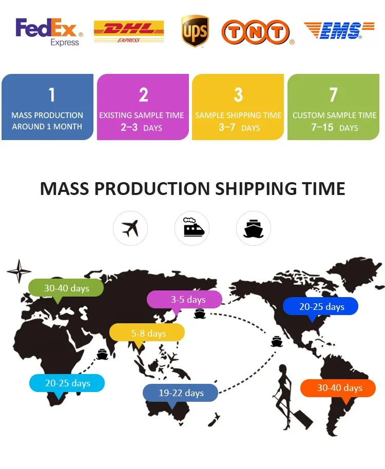 طلبات المخزون خلال 7-15 يومًا، بالنسبة لطلبات OEM وODM، يعتمد الوقت المحدد على الوضع الفعلي.